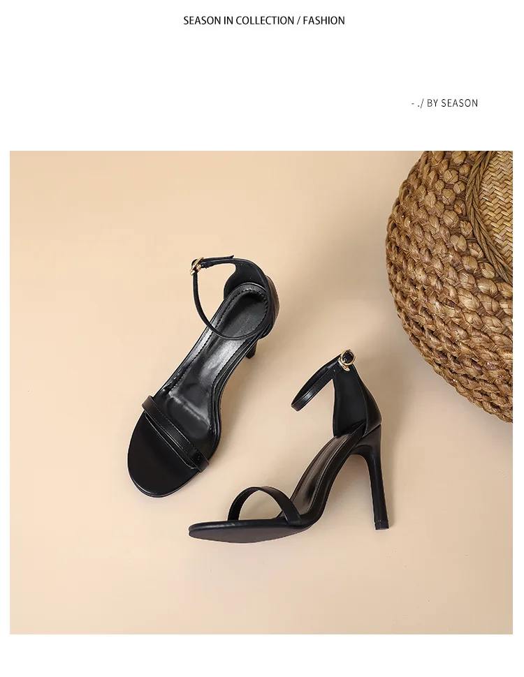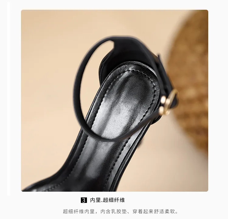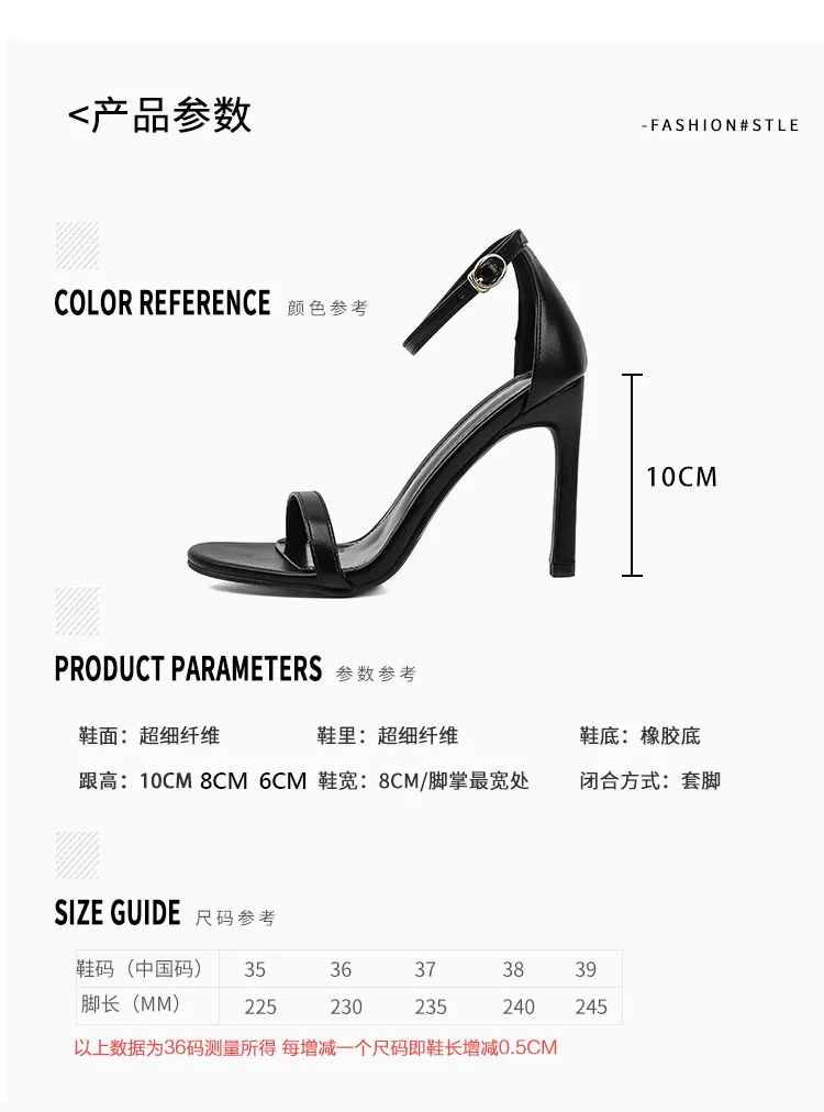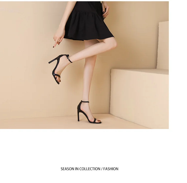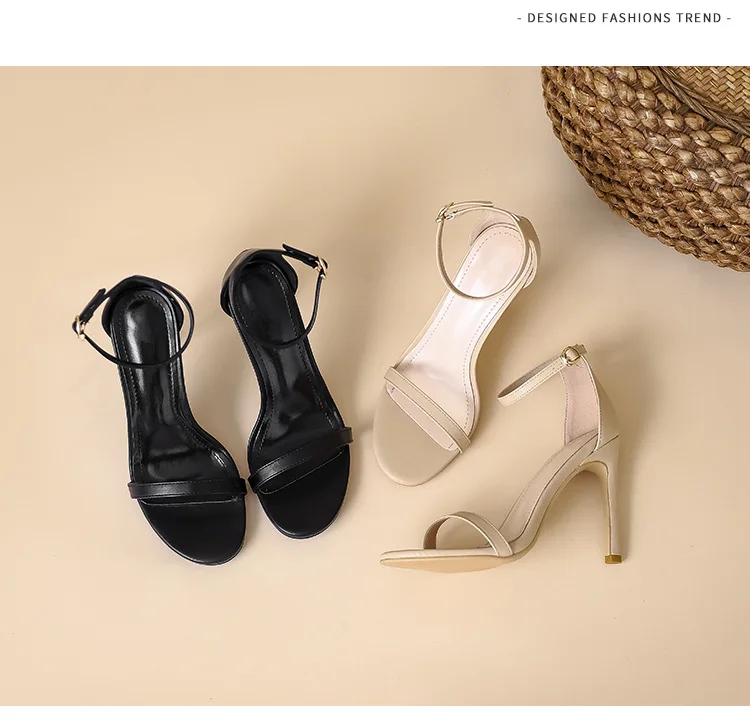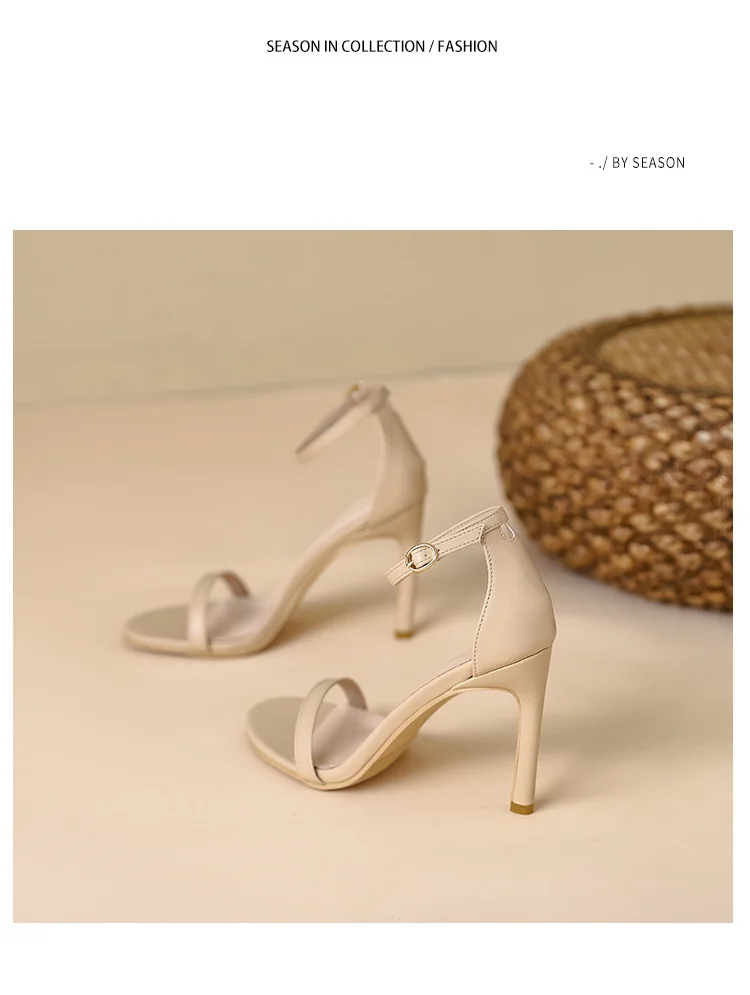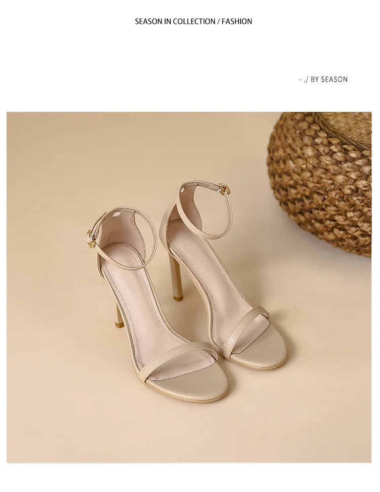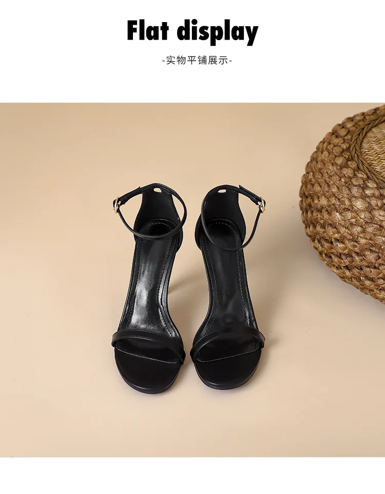2025 Summer New 6cm High Heels Women's Sandals Solid Color One Word Buckle Ladies Slingback 10cm Super High Heels Dress Sandals