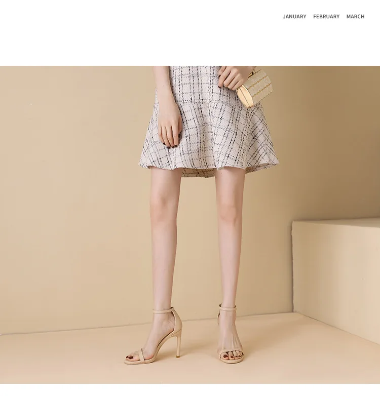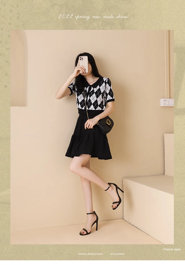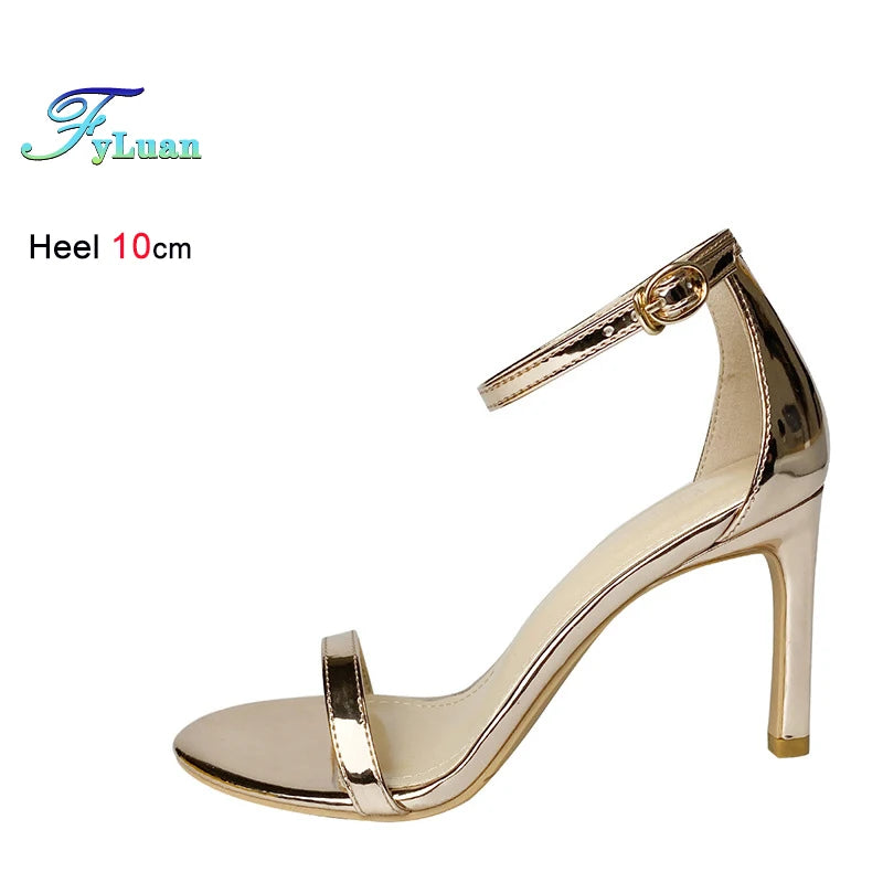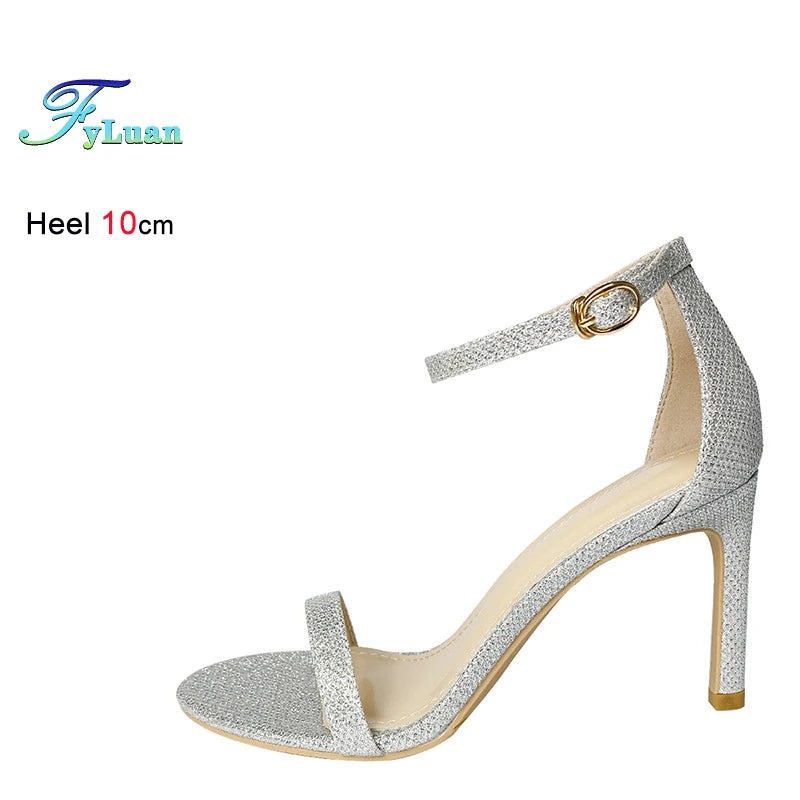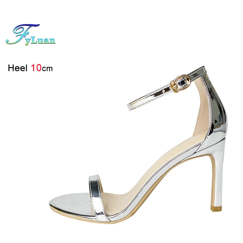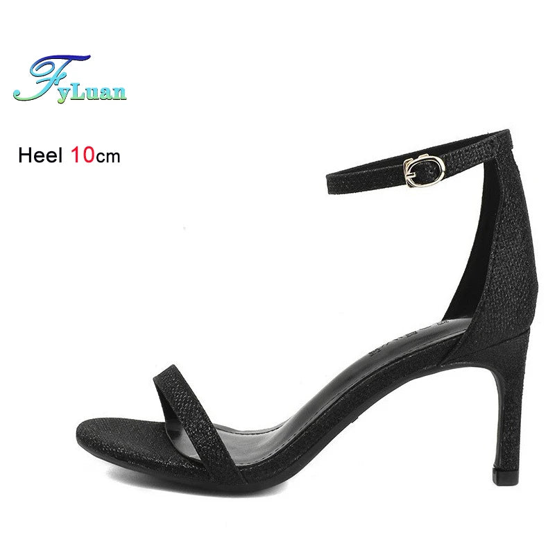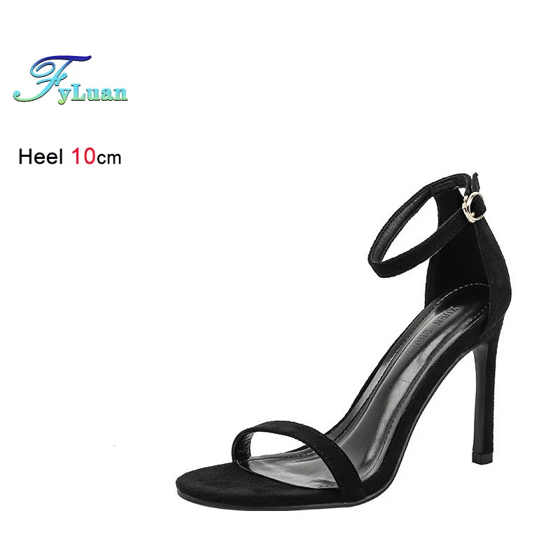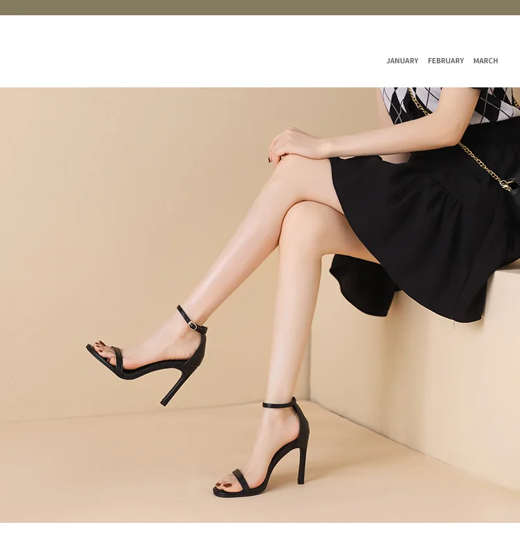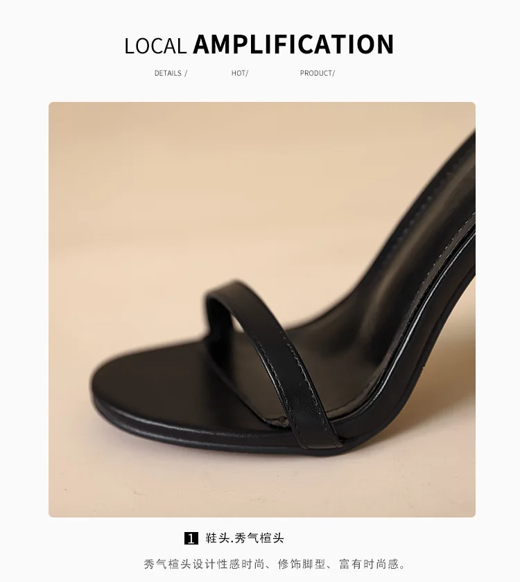 2025 Summer New 6cm High Heels Women's Sandals Solid Color One Word Buckle Ladies Slingback 10cm Super High Heels Dress Sandals